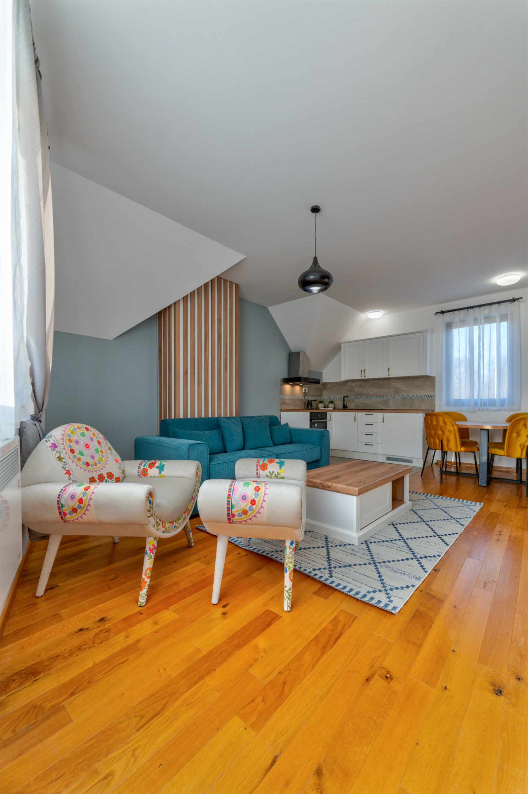 Masy apartman osmišljen je tako da pruži osećaj udobnosti, mira i inspiracije na svakom koraku. Kombinacija toplih drvenih tonova, mekih tekstura i vedrih boja stvara prostor u kojem se boravak pretvara u pravo uživanje.