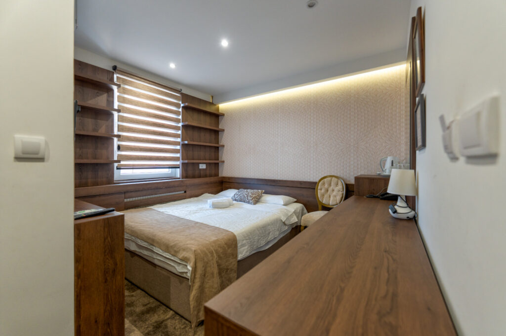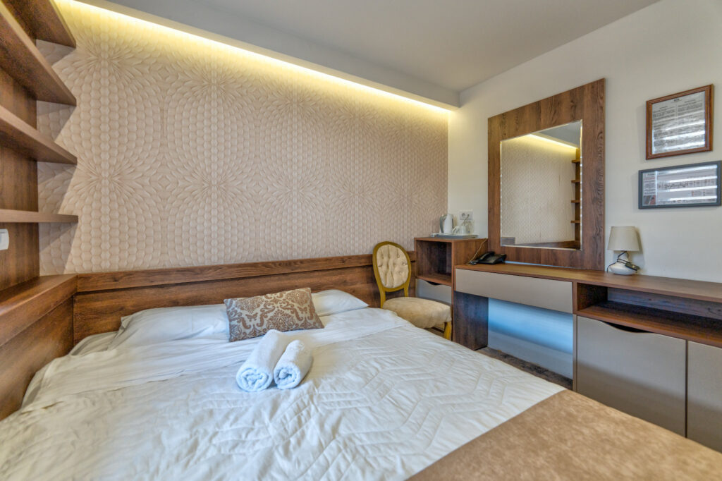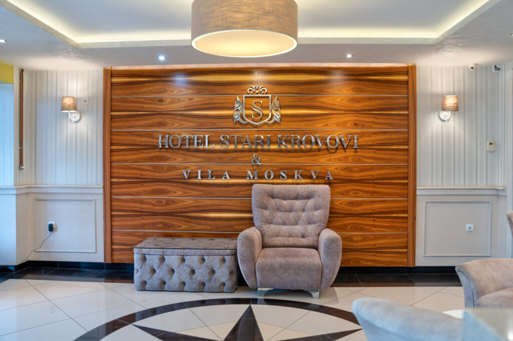 U enterijeru hotela Stari krovovi spojeni su klasični tonovi i savremene linije, stvarajući prostor koji odiše mirnoćom i prijatnom atmosferom.