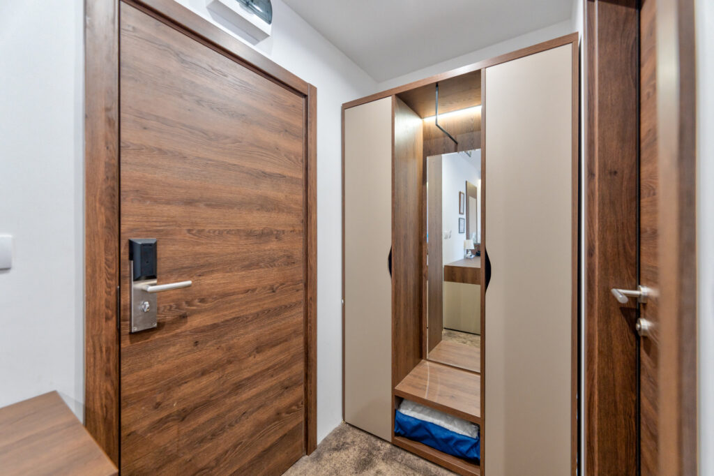 Dominiraju tople bež nijanse, teksture drveta i suptilni detalji koji čine da svaka soba deluje skladno i ugodno.