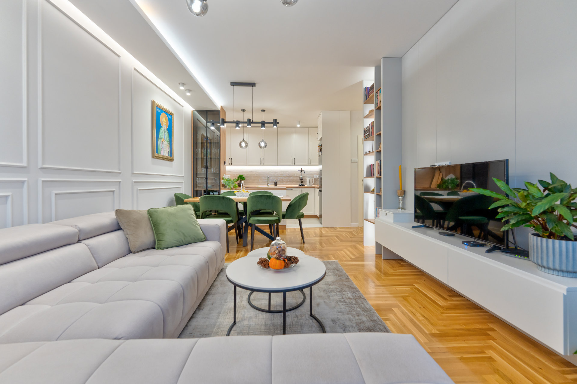 Moderan stan u kojem se klasika i savremen dizajn susreću u savršenom balansu.